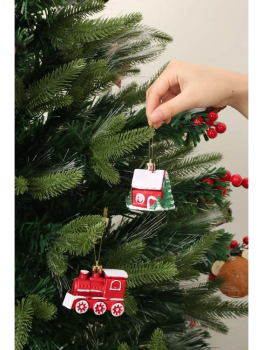 Набор новогодних игрушек Два 6см дома-Поезд 6cm Красный Китай