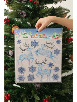 Новогодние наклейки Олень Синий 37x31CM Китай