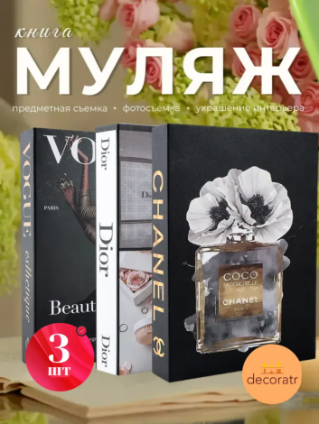 Книги для украшения 27*17*4cm “CHANIEL”“VOGUE”“DIOR”«Комплект из 3 штук» AC-6743 Китай