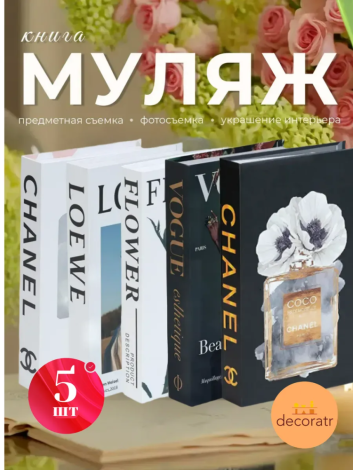 Книги для украшения 27*17*4cm “CHANIEL”“VOGUE”“DIOR”“LOEWE”“CHANEL N5” «Комплект из 5 штук» AC-3678