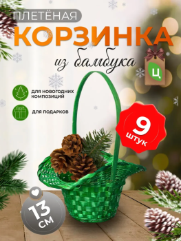Корзина плетеная (бамбук), D21/13xH14/29см зеленая/ Уп 9 шт